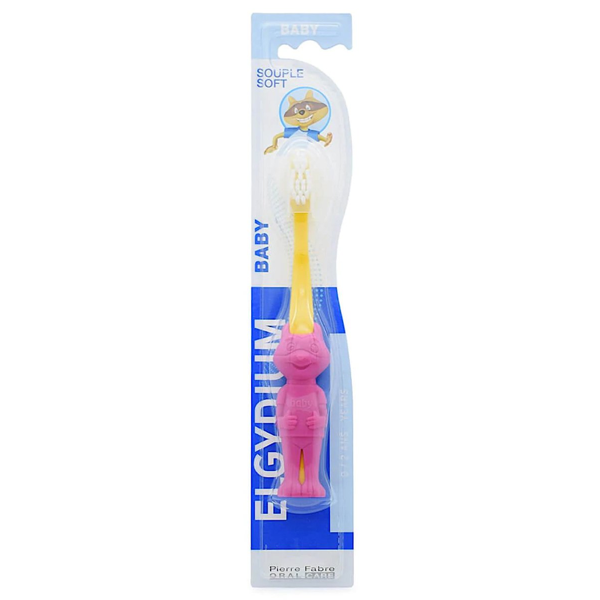Бебешка четка за зъби Elgydium е специално проектирана за първите зъбки на бебето. Може да се използва както в комбинация със специални успокояващи гелове за облекчаване на симптомите при поникване на първите зъбки, така и просто за почистване на зъбите на бебето. Също така дръжката на четката за зъби работи като дъвка.