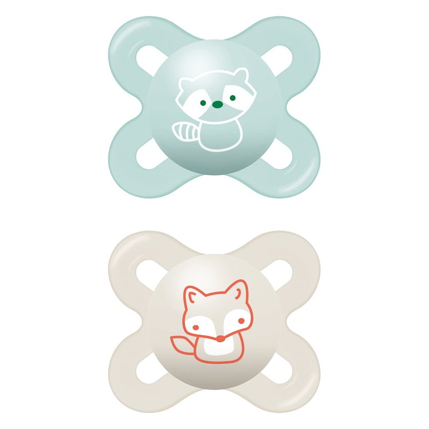 MAM Design: Симетрична форма, която идеално пасва на устата на бебето. Проектиран в сътрудничество с детски зъболекари за правилно развитие на зъбите.