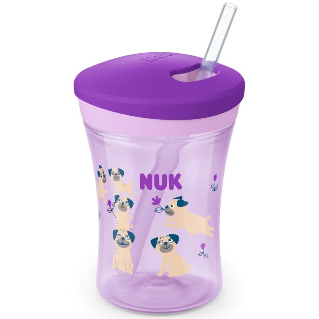 NUK Action Cup е изработена от висококачествени, издръжливи материали, 100% без BPA и е украсена със сладки дизайни. Всички негови части се почистват лесно и ефикасно. Също така NUK Action Cup е много лесна за разглобяване и сглобяване. Нейната форма, която е специално проектирана да се стеснява надолу, позволява на малките ръчички да я хващат с лекота: NUK Action Cup придружава нашите малки в малките и големите приключения на тяхното ежедневие.