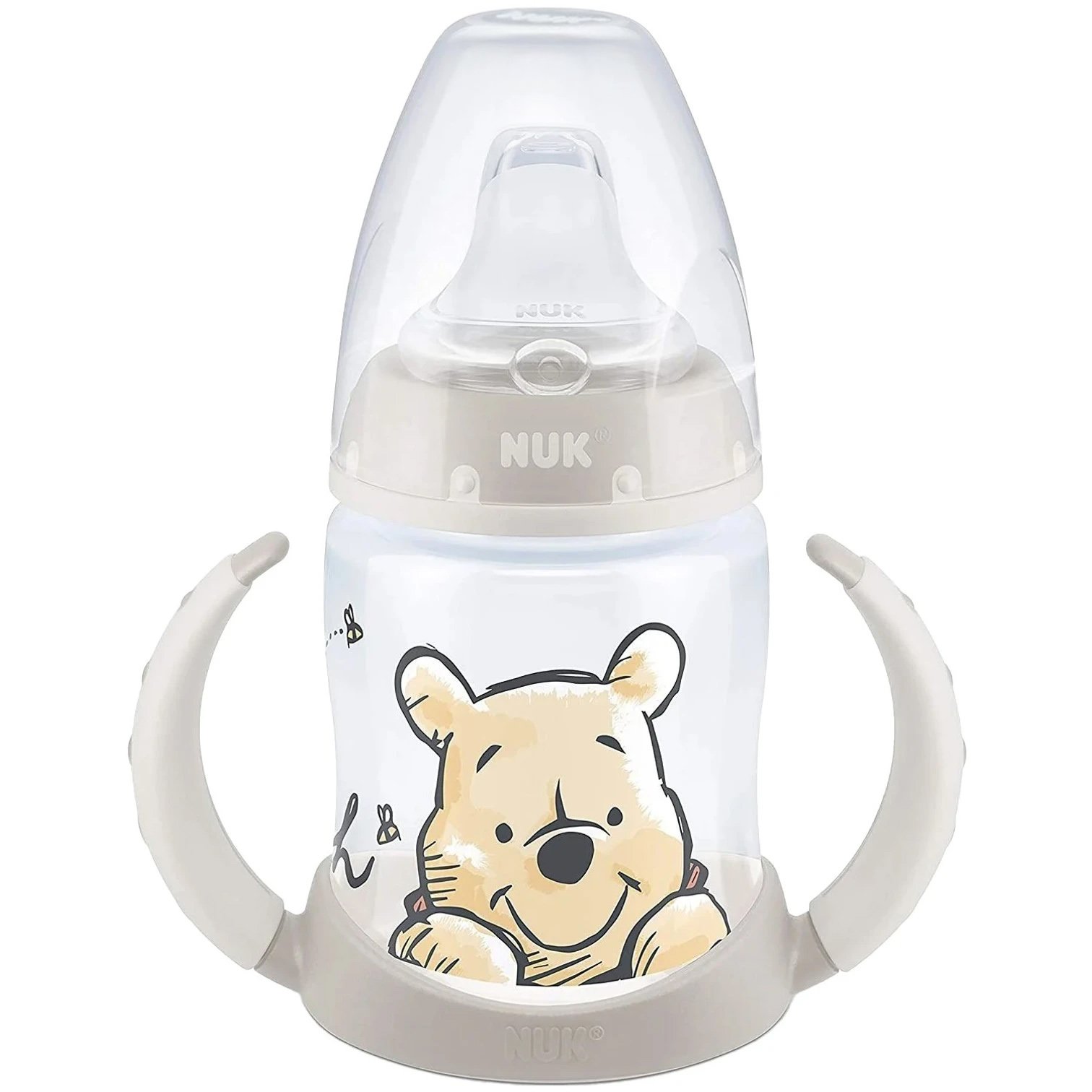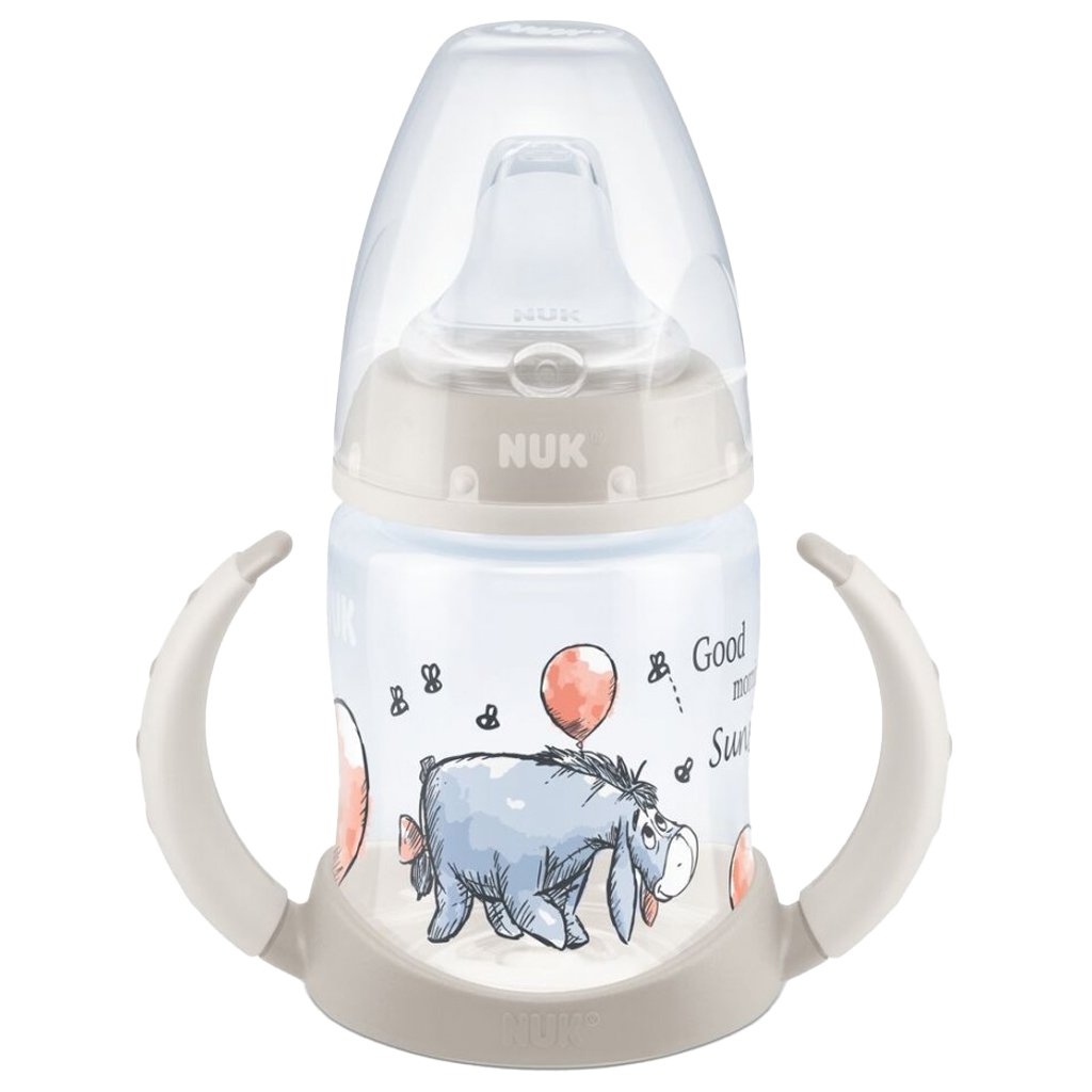 Учебна бутилка NUK First Choice Disney Winnie the Pooh: лесно научаване да използвате чаша самостоятелно, със специално проектирана форма.