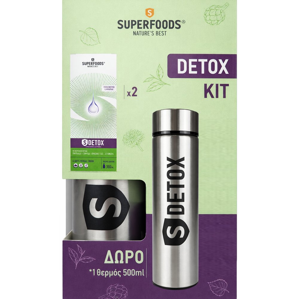 Superfoods Promo S Detox 600ml (2x300ml) & Δώρο Θερμός 500ml 1 Τεμάχιο - Inox